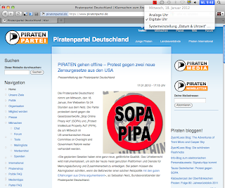 Um einem internetweiten Protest Genüge zu tun, hätte aus der Sicht der deutschen Piratenpartei der Blackout bereits am 17. Januar 2012 um 12:00h beginnen KÖNNEN* und man hätte am 19. Januar um 12:00h wieder den Normalzustand wiederhergestellt. So wäre der 18. Januar weltweit wahrgenommen worden. Das Spiel ließe sich auch auf Zeitzonen-Skripte erweitern, wie ich auch immer …
